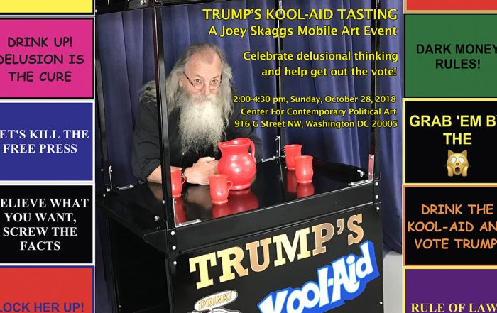 Join us! Come drink Trump’s Kool-Aid and celebrate delusional thinking! Center for Contemporary Political Art (CCPArt) 916 G Street NW, Washington DC 2:00 pm Sunday, October 28, 2018 Joey Skaggs and a band of Trump [...]